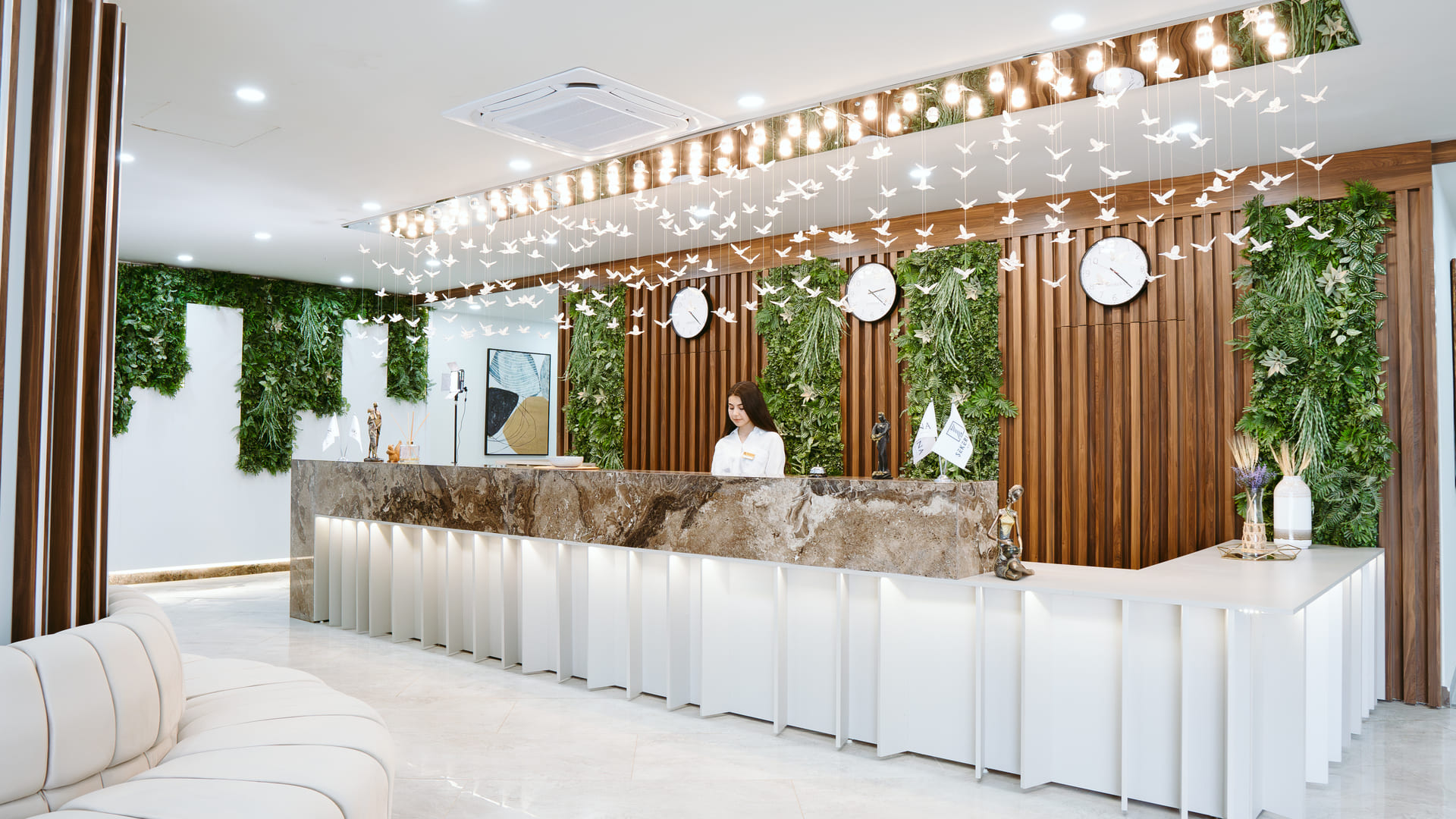 Kusursuz hizmet veren resepsiyonumuz ve geniş lobimiz minik dinlenme anlarınız için sizi sevgiyle karşılıyor.